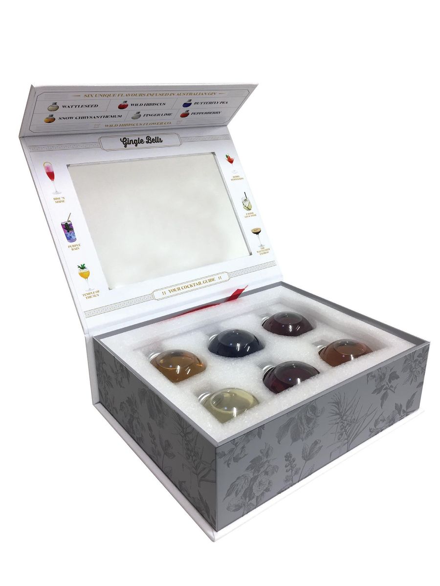Gingle Bells are unique colourful all natural Gin filled baubles infused with edible flowers and Australian native fruits which grow on the “Wild Hibiscus” farm at Kurrajong Heights northwest of Sydney. Each gift box contains 6 baubles and a cocktail recipe card. The packaging is of the highest quality and the box has a magnetic close. View the YouTube video with Lee Etherington, the concept’s creator…
