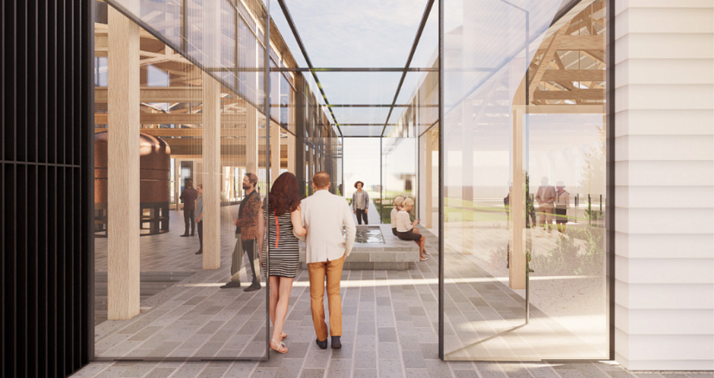 The development will involve the construction of a new, architecturally significant and sustainable building as a permanent home for the whisky production and will also include the restoration of the century-old Drill Hall for the brand experience, museum and cellar door.